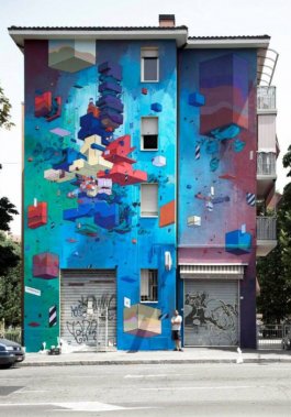 Born in Stockholm, he moved to Florence where in 1992 his passion for graffiti writing began, always searching for new roads so as to surpass the classical limits and taking mural painting to higher levels: he evolves the letters of his name into geometrical masses and architectural forms that violently interweave on opposite levels and disorientating perspectives to represent an even more constricting concrete and precarious equilibrium in the everyday life of us all; this manner of representing the city, critisizing the urban dinamics, is in close relationship to the artist’s different ways of approach to painting, also to sculpture, the installation of objects and to toy design. Authoritative witness of his time, experimenter and innovator of lettering, he has travelled the world thanks to his art; among the most prominent Italian street artists, he has partecipated in the main festivals of street art in Italy and abroad and is present in galleries and important exhibitions among which we cite the International Biennium of graffiti in San Paolo de Brazil.