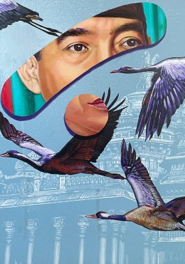 La stampa era il mio pane quotidiano e la mia prima introduzione al lavoro illegale di strada. Presi una mentalità da graffiti di girare “Tutta la città” e avrei voluto creare Google Maps di proprietà libere in ogni parte dei cinque quartieri dove poter tornare con manifesti e colla. Ben presto artisti famosi artisti della street art mi affidarono commissioni come Wynwood Walls in Miami. Affiggere manifesti illegalmente era una rete che mi collegava a tutti i tipi di personaggi come Shepard Fairey. Ma la stampa alla fine era troppo limitata. La stampa del blocco in linoleum limitava le dimensioni del lavoro, così trascrissi la mia filosofia su un “sito generato” di approccio alla proprietà libera che stavo colorando. Invece di riprodurre multipli, ogni sito fu affrontato in modo specifico, con un poster dipinto a mano su misura per adattarsi allo spazio. Questo cambiamento di forma accompagnò un cambiamento di mentalità intorno alla responsabilità del lavoro e valutai le possibilità di passare alla pittura di grande formato. Nel 2010 Internet si incendiò di nuove emozioni sui murales con un sentimento fresco e audace nella posizione politica e nelle strategie formali.
