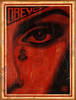 As for poster art, we admire Portrait of an artist by Abbominevole, who, starting from 2004, wallpapered Milan with the face of the unaware Roberto Cuoghi, and three works by Shepard Fairey-Obey: the first depicts the wrestler Obey The Giant (his identifying logo) and the other two are of political commitment, an area dear to the American artist who supported Obama during the 2008 US elections with the famous Hope manifesto.